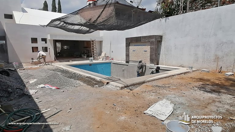 Remodelación y construcción de vivienda, incluida fachaza, patio y alberca en Cuernavaca Morelos